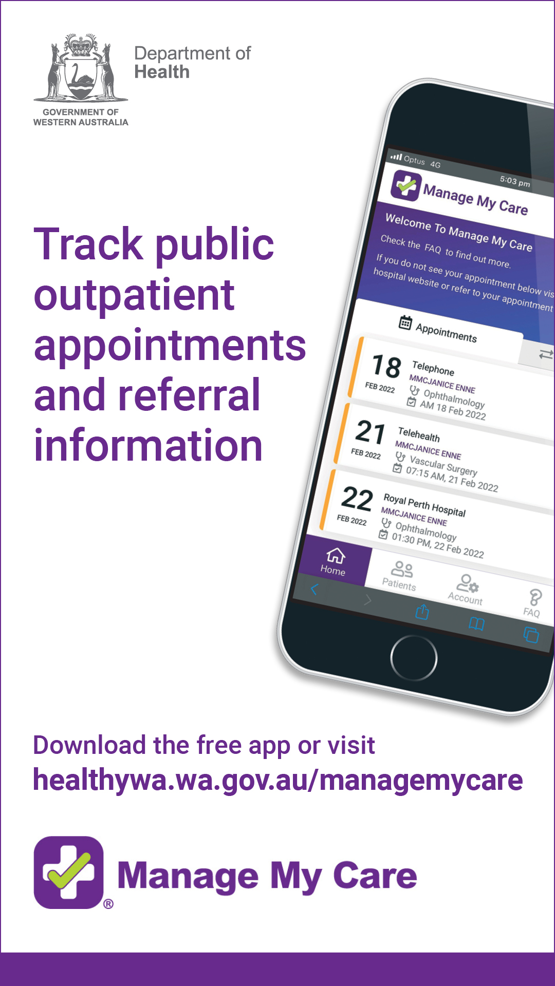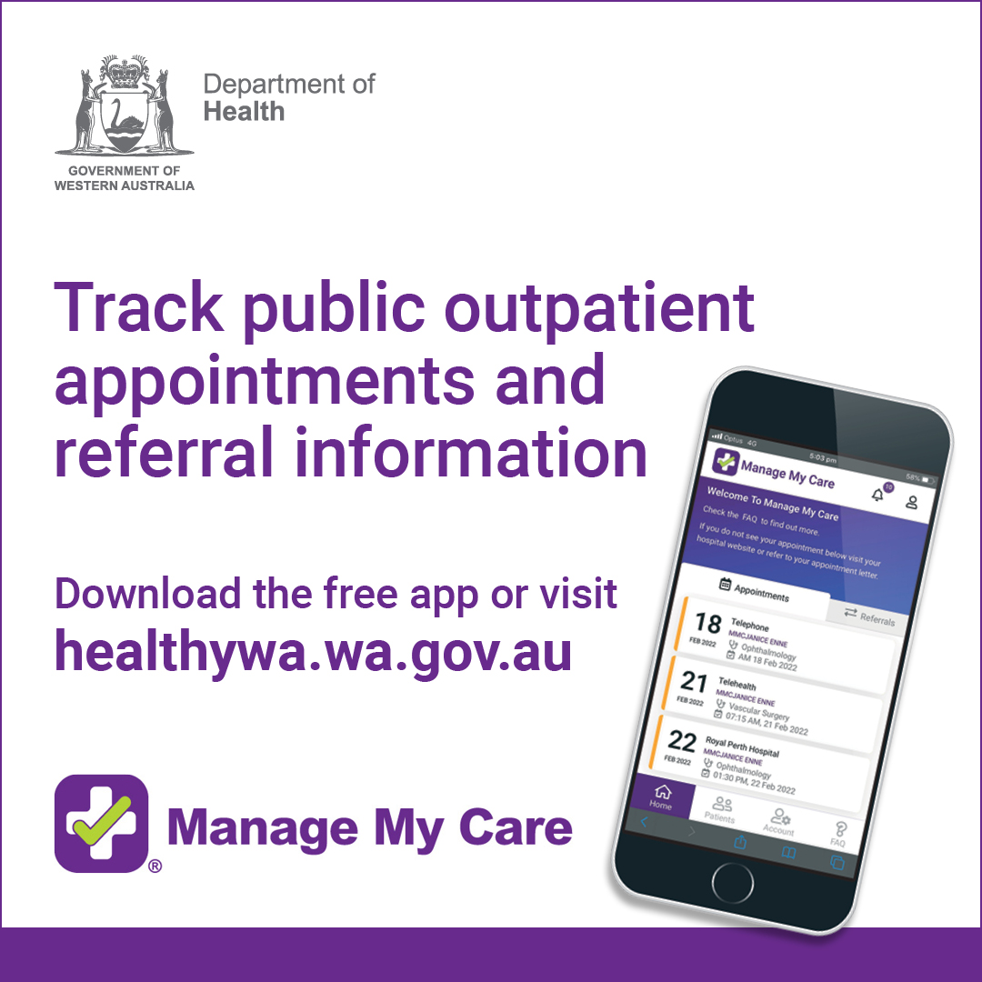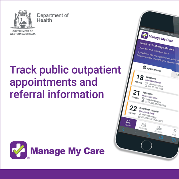For more information and to download Manage My Care visit HealthyWA (external site).