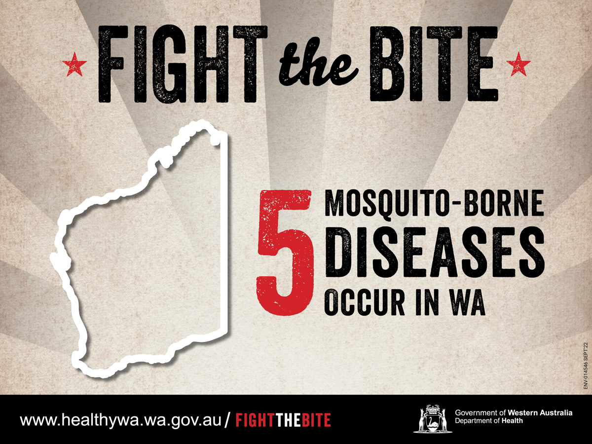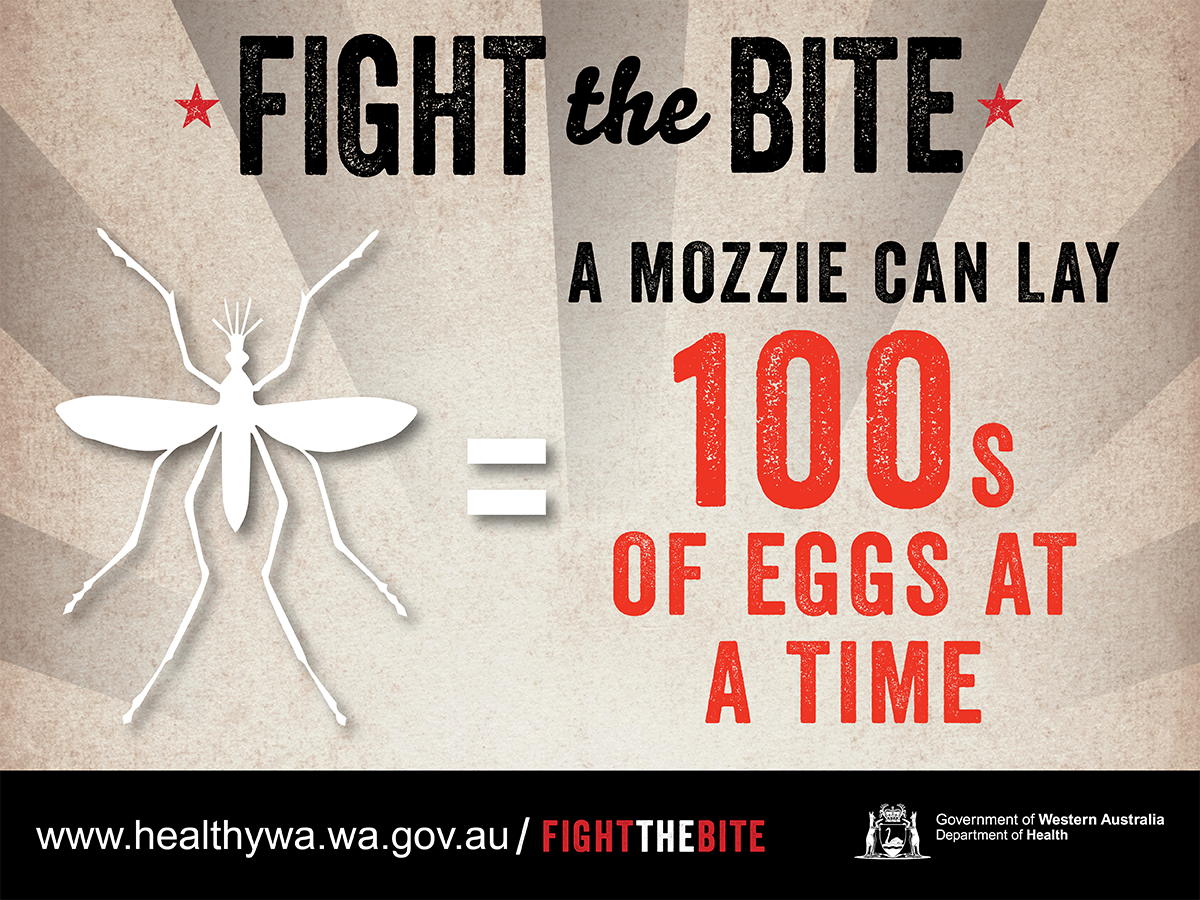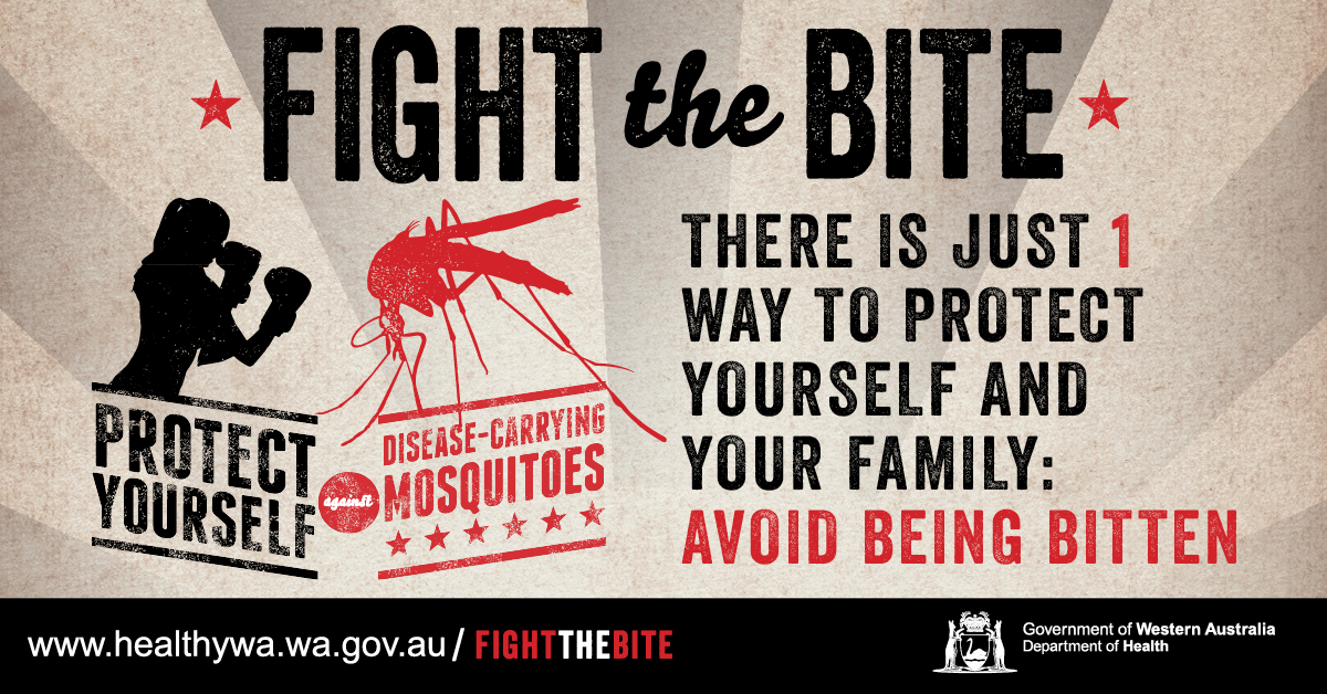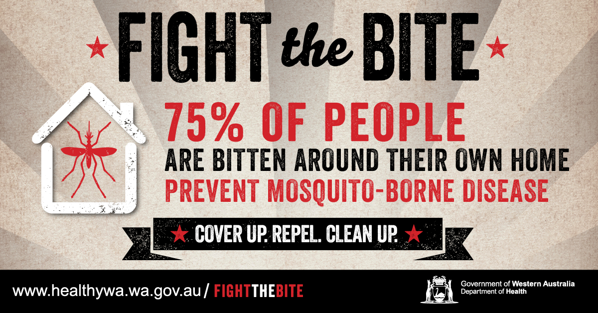 WA Health’s Fight the Bite campaign was originally launched to educate individuals on simple ways to prevent being bitten by mosquitoes, reduce breeding around their home/holiday accommodation and minimise the risk of mosquito-borne disease transmission. Resources for general mosquito avoidance continue to be developed and added to this page.