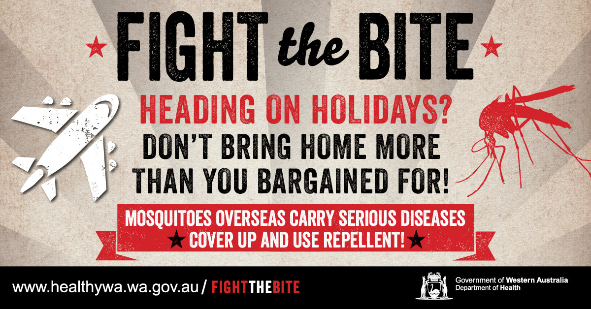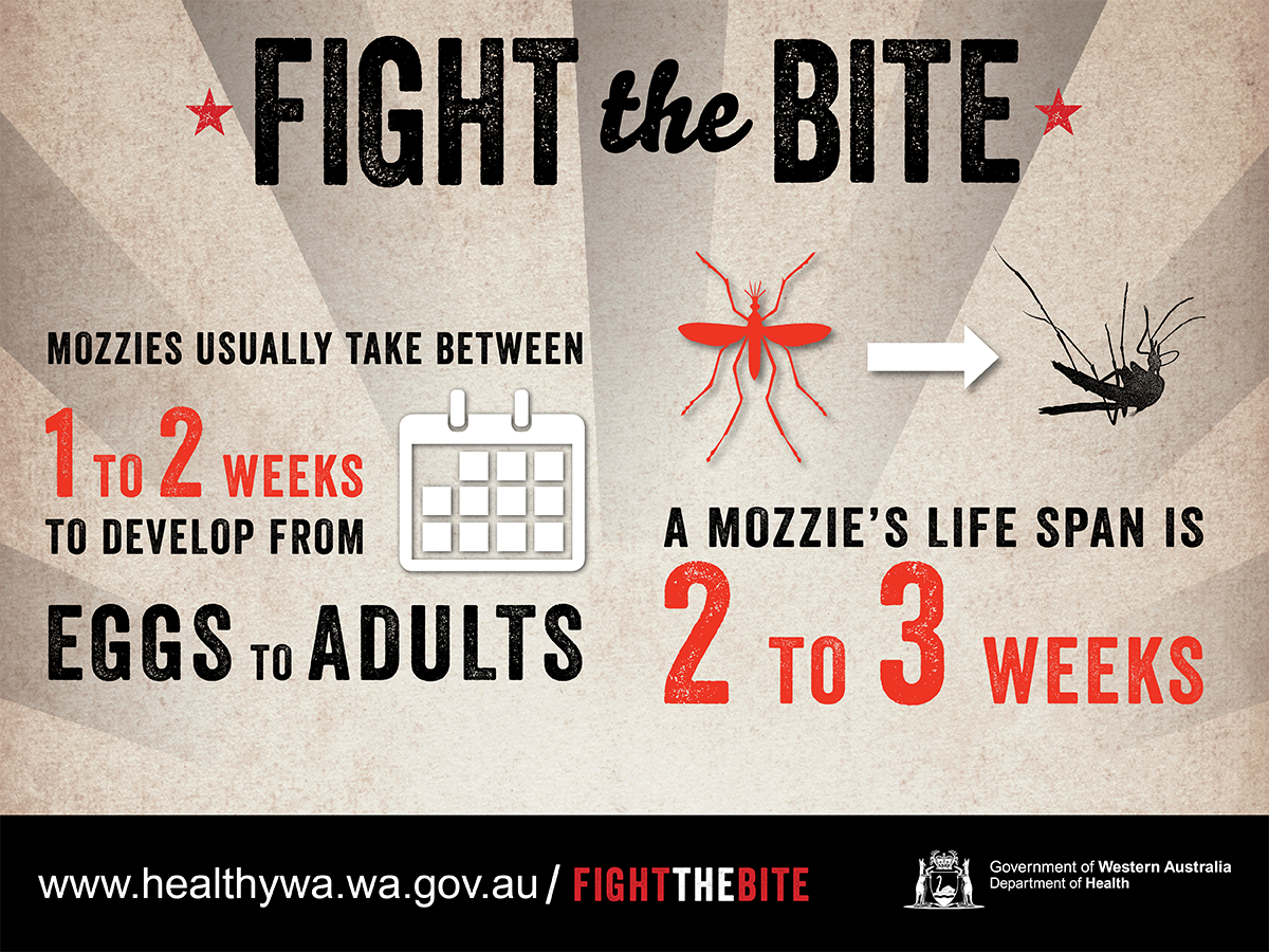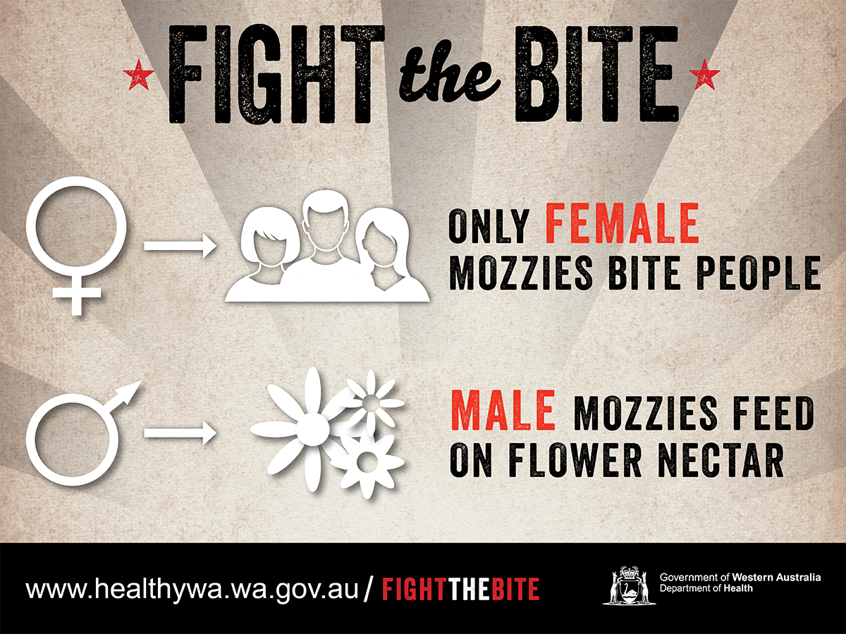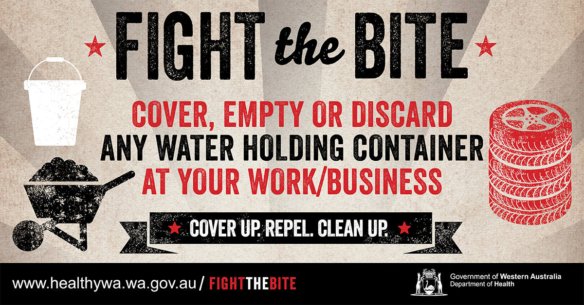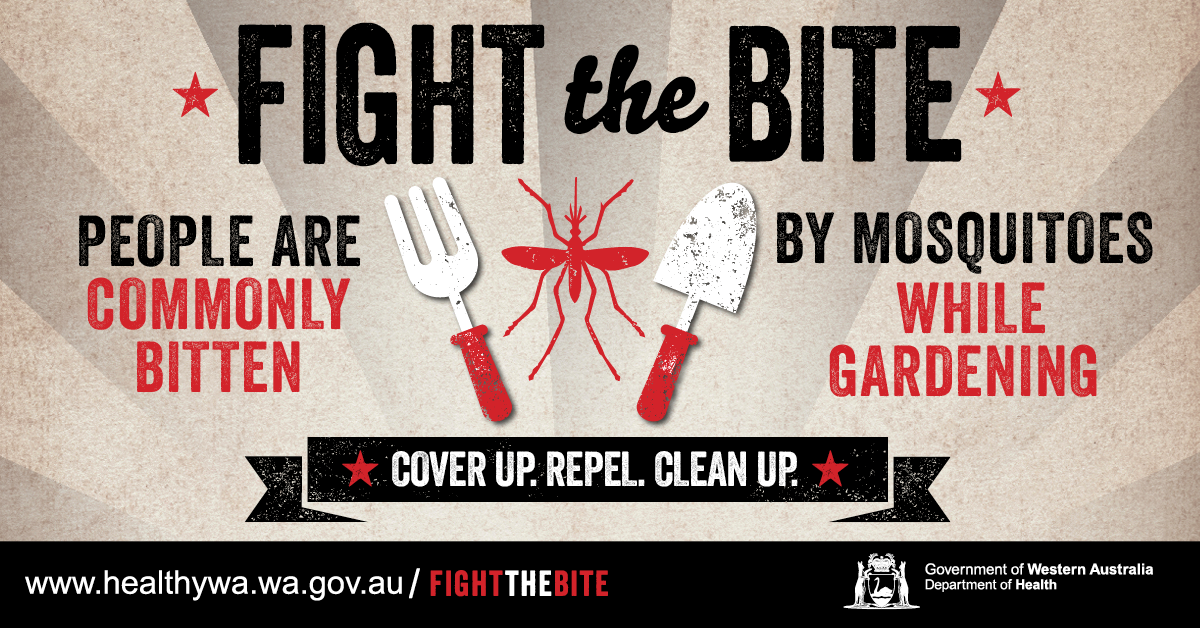 WA Health’s Fight the Bite campaign was originally launched to educate individuals on simple ways to prevent being bitten by mosquitoes, reduce breeding around their home/holiday accommodation and minimise the risk of mosquito-borne disease transmission. Resources for general mosquito avoidance continue to be developed and added to this page.
