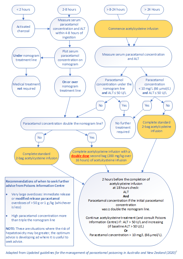 2. Chiew A, Reith D, Pomerleu A, Wong A, Isosardi KZ, J Soderstrom, Buckley N. Updated guidelines for the management of paracetamol poisoning in Australia and New Zealand. Med J Aust 2019; p1-9. doi: 10.5694/mja2.50428